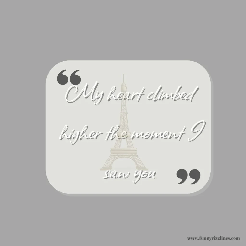 I climbed the Eiffel Tower once, but my heart climbed higher seeing you.