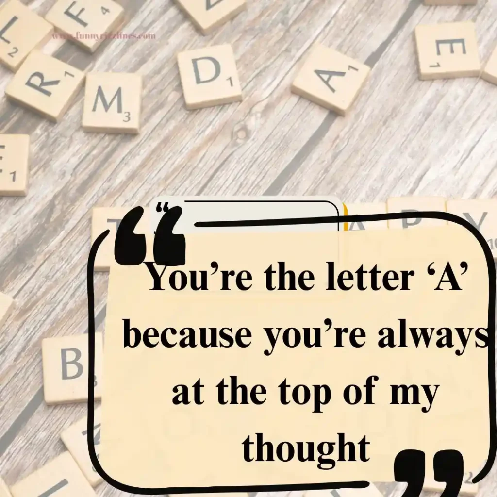“You’re the letter ‘A’ because you’re always at the top of my thoughts.”