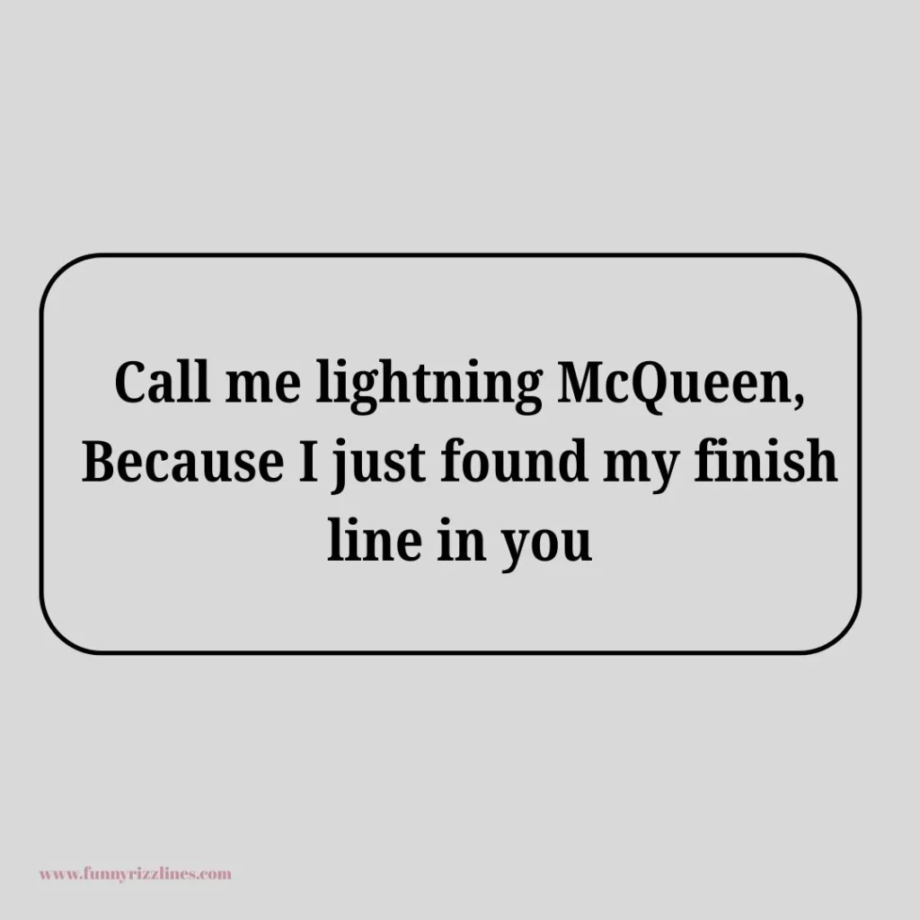 Welcome to FunnyRizzLines.com, where flirting meets speed and confidence races ahead! If you’re looking to impress someone with fun, creative, and unique pick-up lines, then Lightning McQueen rizz lines are the perfect choice. Inspired by the iconic racing legend from Cars, these lines combine humor, charm, and a fast-paced vibe that makes your conversations exciting and unforgettable.