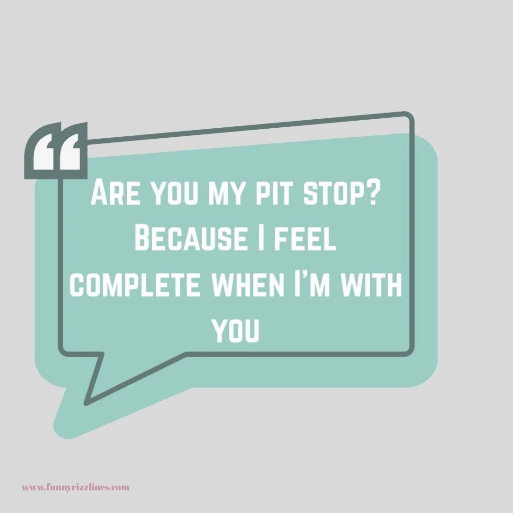 “Are you my pit stop? Because I feel complete when I’m with you.”